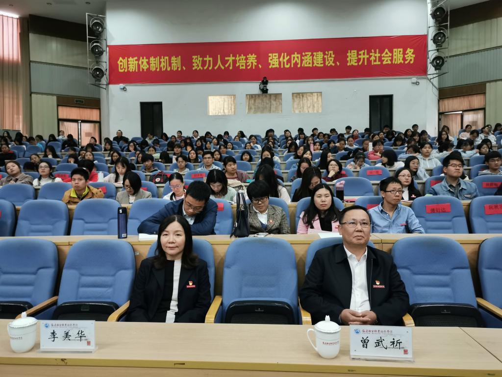 為深入開展“不忘初心、牢記使命”主題教育,增強(qiáng)我校師生的初心使命意識和勇于擔(dān)當(dāng)作為的歷史責(zé)任感、使命感和緊迫感,2019年11月28日下午,我?!靶l(wèi)院之原”馬克思主義論壇在學(xué)術(shù)報(bào)告廳舉行。本次論壇邀請福建江夏學(xué)院馬克思主義學(xué)院院長郭健彪教授為我校師生“新時(shí)代中國的發(fā)展大戰(zhàn)略及當(dāng)下面對的國際環(huán)境”專題講座。講座由校黨委書記曾武祈主持,校黨委副書記李美華、各系部黨總支書記、副書記、學(xué)工處主要領(lǐng)導(dǎo)、團(tuán)委主要領(lǐng)導(dǎo)、全體輔導(dǎo)員、馬院全體教師、護(hù)理系學(xué)生代表、健康管理系學(xué)生代表及社團(tuán)學(xué)生代表參加了此次活動(dòng)。