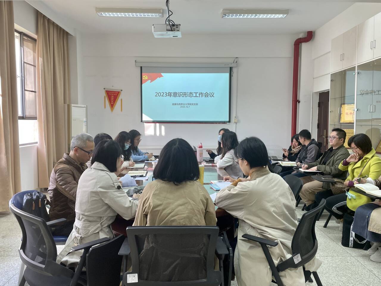 2023年12月7日,直屬馬克思主義學(xué)院黨支部在行政樓107召開2023年意識形態(tài)工作會議,會議由黨支部書記熊美蘭主持,支部全體黨員參加了會議。