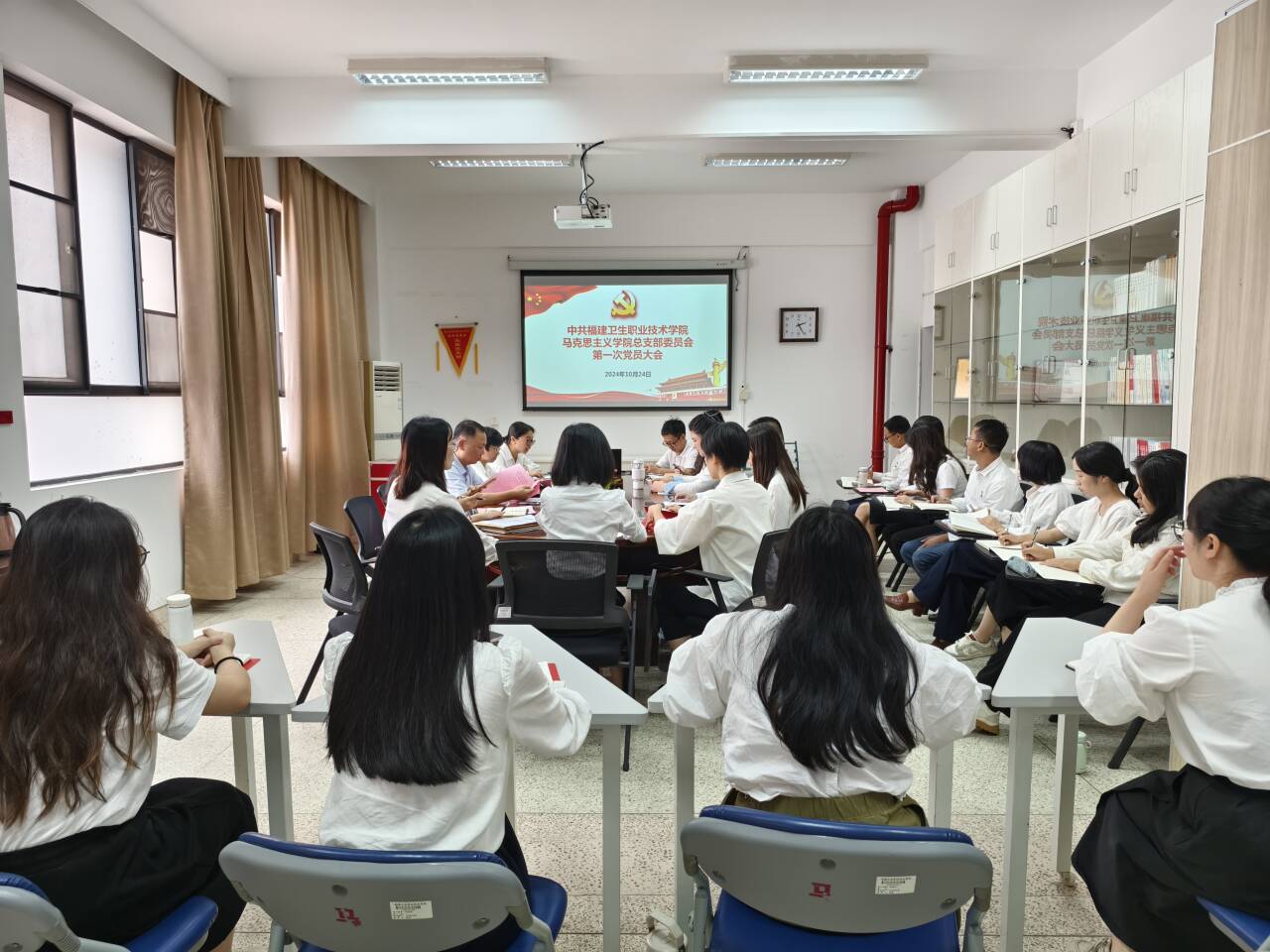 2024年10月25日,中共福建衛(wèi)生職業(yè)技術(shù)學(xué)院馬克思主義學(xué)院總支部委員會第一次黨員大會在厚德樓107會議室順利召開,會議由馬院黨總支副書記賴文金主持,馬院黨總支23名黨員參加。