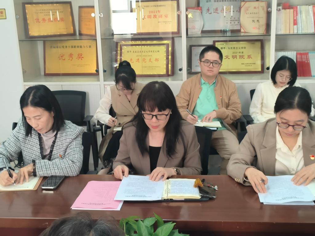 院黨總支書記熊美蘭從“壓緊壓實(shí)責(zé)任鏈條,著力扛起政治擔(dān)當(dāng)”“深學(xué)細(xì)悟理論精髓,著力筑牢思想支柱”“黨建領(lǐng)航融匯力量,著力深耕育人主業(yè)”三個(gè)方面對(duì)馬院全面從嚴(yán)治黨主體責(zé)任落實(shí)情況進(jìn)行了詳細(xì)匯報(bào),同時(shí)對(duì)黨建業(yè)務(wù)融合、關(guān)鍵課程建設(shè)、黨員隊(duì)伍建設(shè)等工作中存在的問題與不足進(jìn)行了深入的剖析,并提出了下一步工作思路。