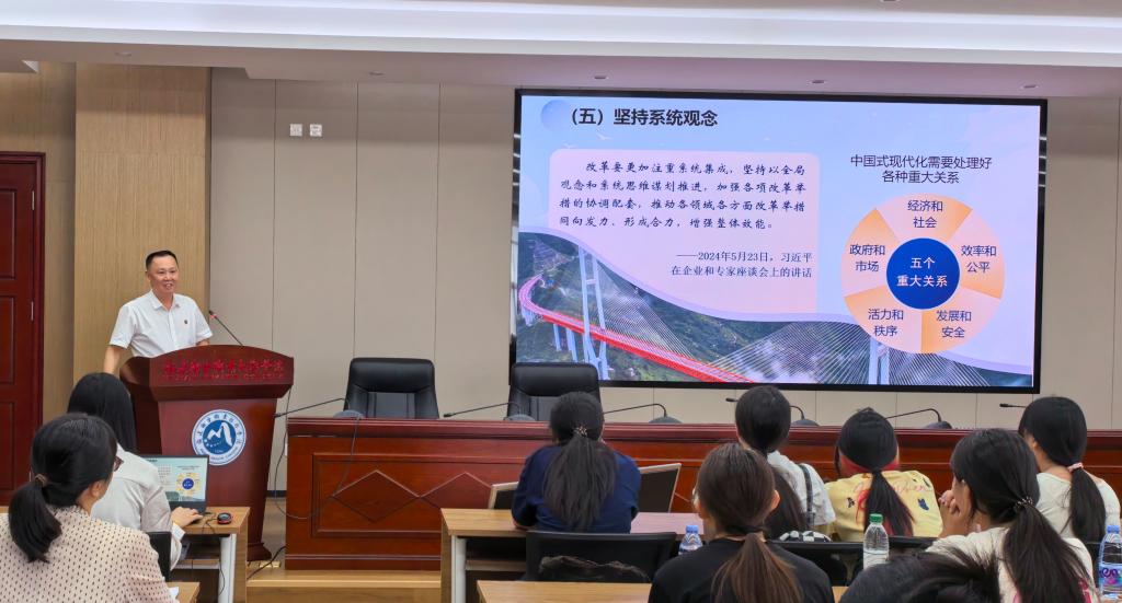 曾武祈從國家戰(zhàn)略高度系統(tǒng)梳理“十四五”時期我國經(jīng)濟社會發(fā)展取得的突破性成就與積累的寶貴經(jīng)驗,深刻闡釋了“十四五” 規(guī)劃在全面建設(shè)社會主義現(xiàn)代化國家關(guān)鍵藍圖中的核心意義。授課中,他緊密結(jié)合學(xué)校發(fā)展實際,圍繞“十五五”發(fā)展愿景與學(xué)校高質(zhì)量發(fā)展路徑展開深入分析,強調(diào)學(xué)校始終堅持以國家戰(zhàn)略和區(qū)域需求為導(dǎo)向,以“升格本科職業(yè)大學(xué)”為發(fā)展目標,持續(xù)深耕職業(yè)教育,奮力書寫新時代立德樹人與辦學(xué)治校的新篇章。