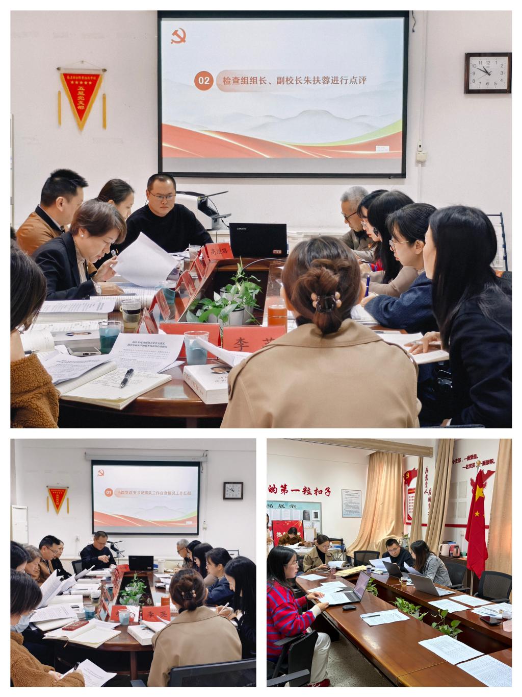 聽取匯報后,檢查組現(xiàn)場調(diào)閱資料、與黨員教師代表談心談話,對馬院相關(guān)工作開展全面檢查。朱扶蓉副校長對馬院黨總支的工作成效給予充分肯定,并提出幾點建議:一是深化黨建與業(yè)務(wù)深度融合,以品牌創(chuàng)建激活育人效能,聚焦思政課教學(xué)核心業(yè)務(wù),總結(jié)各類教學(xué)競賽相關(guān)經(jīng)驗,打造具有馬院特色的、可提煉可復(fù)制可推廣的思政教學(xué)創(chuàng)新品牌。二是強化師資隊伍建設(shè),以精準支持筑牢育人根基,凸顯正向激勵,激發(fā)教學(xué)活力,緩解雙重壓力,為教師搭建成長平臺,助力提升專業(yè)素養(yǎng)。三是推動思政力量下沉,讓“一站式學(xué)生社區(qū)”成為育人主戰(zhàn)場,聚焦學(xué)生思想動態(tài)和實際需求,創(chuàng)新活動形式載體,以學(xué)生喜聞樂見的方式傳遞正能量,實現(xiàn) “潤物細無聲” 的價值引領(lǐng)。