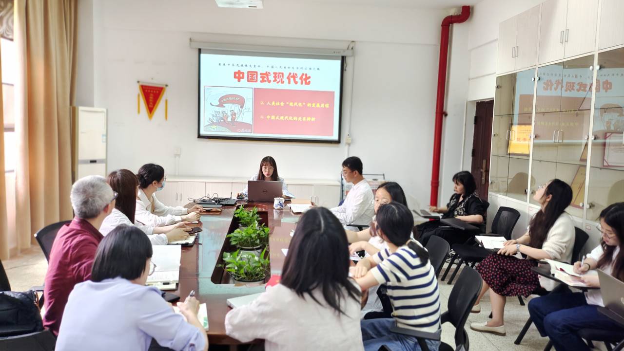 隨后,馬院支部全體黨員在行政樓107開(kāi)展經(jīng)典研學(xué)分享活動(dòng),蔣楠同志以《黨的二十大精神學(xué)習(xí):深入理解和把握中國(guó)式現(xiàn)代化的本質(zhì)》為題,首先從人類社會(huì)“現(xiàn)代化”的發(fā)展歷程角度對(duì)“現(xiàn)代化”進(jìn)行剖析,緊接著辨析“中國(guó)式現(xiàn)代化”與“中國(guó)的現(xiàn)代化”“中國(guó)式現(xiàn)代化道路”“全面建設(shè)社會(huì)主義現(xiàn)代化國(guó)家”“中國(guó)特色社會(huì)主義現(xiàn)代化”之間的關(guān)系,指出中國(guó)式現(xiàn)代化既符合現(xiàn)代化的一般特征,又具有中國(guó)特色,還具有國(guó)際傳播力,中國(guó)式現(xiàn)代化的每一步跨越都將產(chǎn)生世界性影響。