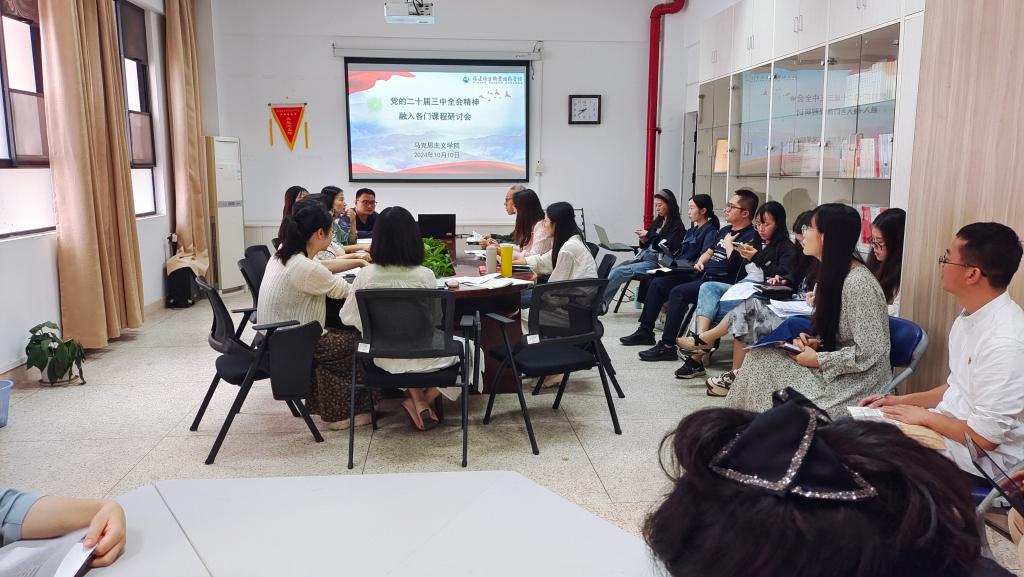 為深入學(xué)習(xí)貫徹黨的二十屆三中全會(huì)和全國(guó)教育大會(huì)精神,進(jìn)一步推動(dòng)思想政治理論課改革創(chuàng)新,2024年10月10日,馬克思主義學(xué)院在厚德樓107開(kāi)展黨的二十屆三中全會(huì)、全國(guó)教育大會(huì)精神融入思政課交流研討會(huì)。