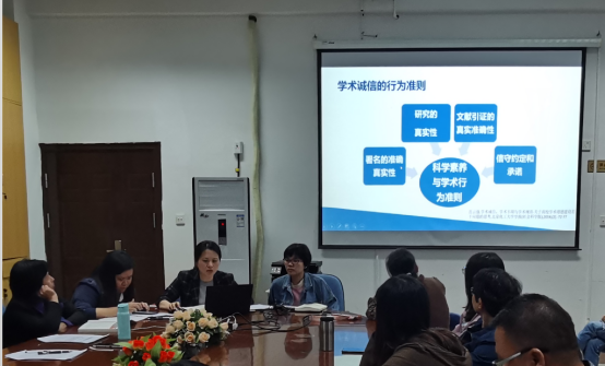 會中,醫(yī)學技術系黨總支書記陳俊穎帶領大家學習了《醫(yī)學科研誠信和相關行為規(guī)范》(國衛(wèi)科教發(fā)〔2021〕7號)、《科學技術活動違規(guī)行為處理暫行規(guī)定》(科學技術部令第19號)、《關于進一步弘揚科學家精神加強作風和學風建設的意見》等相關文件,重點強調了科研誠信、學術道德、學術規(guī)范、學術不端等四個方面具體內容,讓老師們對科研誠信建設的重要性有了更為全面的了解,并且對于科研處下達的科研誠信建設有關工作,陳俊穎也進行了詳細的部署安排,要求全體老師務必高度重視、積極配合,本著認真負責的態(tài)度,按時有效完成專項教育整治活動有關內容。