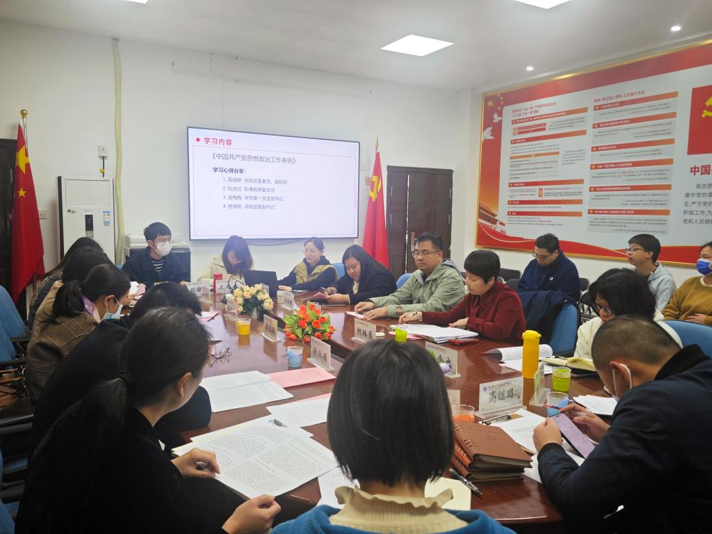 會議遵循“個人自學(xué)+集中學(xué)習(xí)+心得交流+總結(jié)部署”的議程推進。柯瓊鶯書記首先圍繞《條例》制定的時代背景、重大意義、起草原則及主要框架進行系統(tǒng)解讀,詳細(xì)闡述了《條例》作為我黨歷史上第一部關(guān)于思想政治工作的統(tǒng)領(lǐng)性、綜合性基礎(chǔ)主干法規(guī)的核心價值,強調(diào)其為新時代高校思想政治工作提供了根本遵循。隨后,周微琳、陳念文、李英、張立燦同志分別結(jié)合《條例》主體內(nèi)容,從思想政治工作的地位作用、黨的全面領(lǐng)導(dǎo)體現(xiàn)、內(nèi)容方式創(chuàng)新、各領(lǐng)域任務(wù)要求、群團組織優(yōu)勢發(fā)揮等關(guān)鍵章節(jié)展開專題導(dǎo)學(xué),幫助與會人員精準(zhǔn)把握《條例》的基本精神與實踐要求。