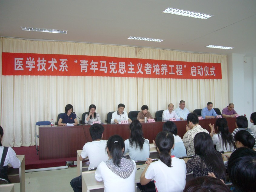 在紀(jì)念五四運(yùn)動(dòng)九十一周年這個(gè)光榮的日子里,醫(yī)學(xué)技術(shù)系在行政樓六樓會(huì)議室隆重舉行“青年馬克思主義者培養(yǎng)工程”(以下簡稱“青馬工程”)啟動(dòng)儀式。院黨委陳雄副書記、魏立娜副院長、黨委工作部董榕部長、學(xué)工處鄭力宏處長、黃銘珊副處長、院團(tuán)委邱滾忠書記、系黨總支洪聿榮副書記等領(lǐng)導(dǎo)出席了啟動(dòng)儀式。 “青馬工程”第一期培訓(xùn)班共有學(xué)員50余人。啟動(dòng)儀式由系團(tuán)總支書記黃小芳主持。