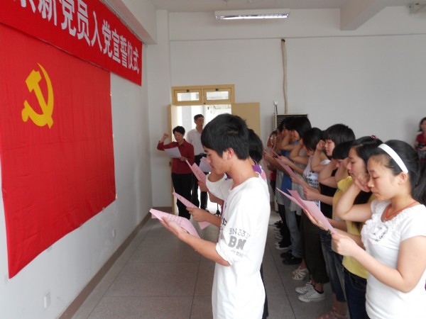儀式上,學(xué)院黨委委員黃開良副院長作了重要講話。他首先指出,預(yù)備黨員面向黨旗進行入黨宣誓,這是黨章的規(guī)定。舉行入黨宣誓儀式,表現(xiàn)了入黨的莊重性和嚴(yán)肅性,是對預(yù)備黨員、入黨積極分子進行教育、增強黨性觀念的一種形式。宣誓是一種形式,更重要的是通過這種形式,用誓詞激勵黨員,終生牢記自己的入黨誓詞,并付諸實踐行動。此次入黨宣誓儀式是在建黨89周年前夕舉行,它的意義也就更加深遠。同時,他向全體黨員提出了四點要求。