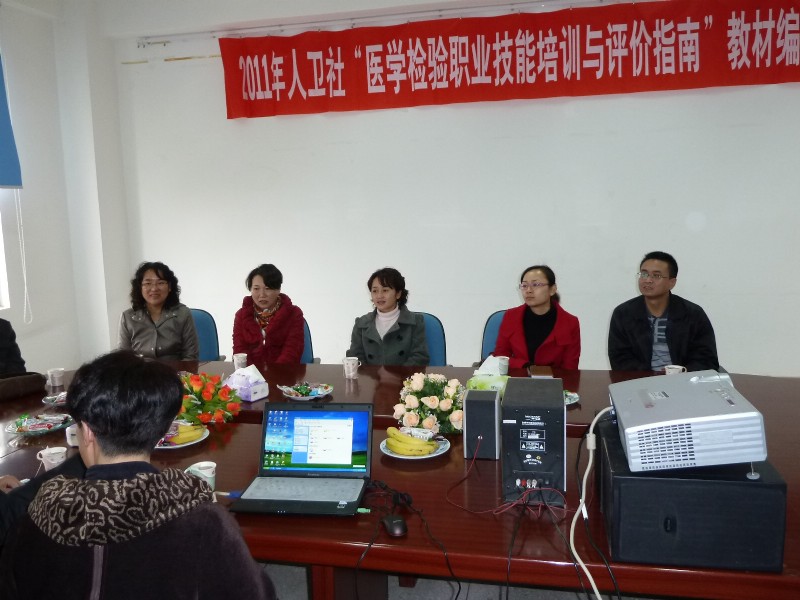 編寫會上主編馬少寧主任介紹了《醫(yī)學(xué)檢驗職業(yè)技能培訓(xùn)與評價指南》教材編寫的指導(dǎo)思想和思路,明確了編寫任務(wù)分工,強(qiáng)調(diào)了編寫教材的交稿要求、時間、負(fù)責(zé)人及互審、主審和定稿時間安排;各編委分組對教材編寫大綱、編寫體例進(jìn)行了認(rèn)真細(xì)致的討論。會議中與會代表還專程到學(xué)院參觀指導(dǎo)。