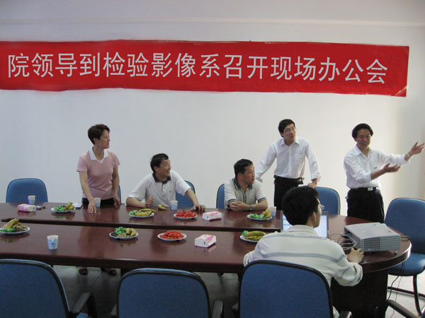 2007年5月10日下午2:00,院領(lǐng)導(dǎo)陳明非書(shū)記、廖偉堅(jiān)副院長(zhǎng)、唐邁副院長(zhǎng)蒞臨檢驗(yàn)影像系召開(kāi)現(xiàn)場(chǎng)辦公會(huì)。院領(lǐng)導(dǎo)親臨實(shí)驗(yàn)室現(xiàn)場(chǎng),傾聽(tīng)檢驗(yàn)影像系領(lǐng)導(dǎo)匯報(bào)各實(shí)驗(yàn)室亟待解決的問(wèn)題,并且現(xiàn)場(chǎng)解決。