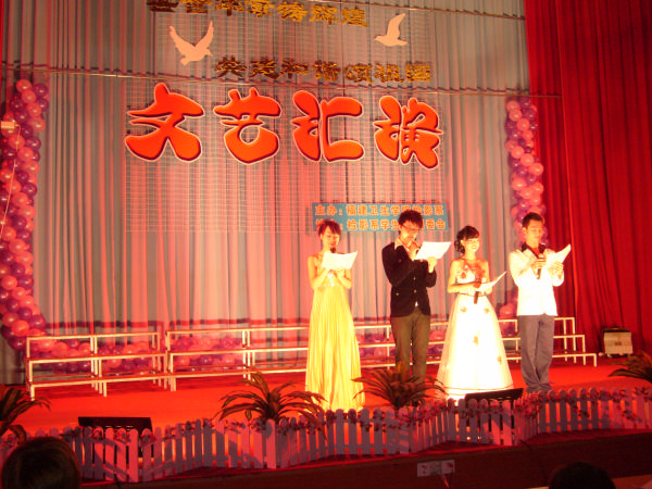 為豐富校園文化生活,陶冶同學(xué)們的藝術(shù)情操,檢驗影像系于2009年5月21日在學(xué)術(shù)廳隆重舉行“盛世華章鑄輝煌,共建和諧頌祖國”文藝晚會。黃開良副院長、學(xué)工處鄭力宏處長、院團委邱滾忠書記、檢驗影像系馬少寧主任、洪聿榮書記、郭禮堅副主任以及各班輔導(dǎo)員、兼職班主任出席了本次晚會。 晚上6:30, 一曲《十送紅軍》正式拉開文藝晚會的序幕。今年是新中國成立60周年,六十年風(fēng)雨兼程鑄就強盛的中國,六十載勵精圖治共創(chuàng)世紀的輝煌,《十送紅軍》情真意切,唱出了軍民魚水情。整臺晚會節(jié)目新穎多樣、內(nèi)容積極向上,學(xué)術(shù)廳里無不洋溢著歡樂的氣氛。有剛勁有力的功夫扇《中國功夫》,舞姿翩翩的扇子舞《青花瓷》、樸素灑脫的苗族竹竿舞和火爆的勁舞《No Body》。相聲《庸醫(yī)》、小品《我像誰》、《梁?!凡粫r引起場下陣陣笑聲。歌曲串燒《歌舞青春》、男女合唱《流星下的愿》、獨唱《他不愛我》、歌伴舞《說唱臉譜》也為晚會增色不少。傳統(tǒng)中國茶藝表演《茶韻》、環(huán)保時裝走秀《Over the rainbow》、氣勢磅礴的詩朗誦《這片山河,這個時代》將氣氛一次又一次地推向高潮。最后,晚會在健美操《Trance Mix》中落下了帷幕。 整場晚會通過輕松活潑的節(jié)目,獨特新穎的創(chuàng)意,充分展示了新一代大學(xué)生多才多藝、富有朝氣;展現(xiàn)出青春活力、健康向上的校園文化精神。