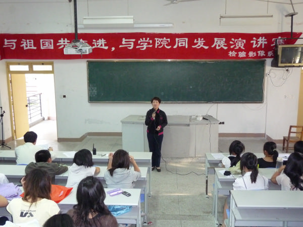 為紀(jì)念五四運(yùn)動九十周年,檢驗影像系于2009年5月6日下午4點(diǎn)在系部第二階梯教室舉行“與祖國共奮進(jìn),與學(xué)院同發(fā)展”演講比賽。檢驗影像系馬少寧主任、洪聿榮書記、郭禮堅副主任、秘書柯瓊鶯老師、傅衍達(dá)老師和各班級輔導(dǎo)員出席了本次演講比賽。 憶往昔,思今朝。12名選手以或激情、或理智、或樸實的話語闡述了他們對“五四”精神的了理解。我們聽到了當(dāng)代青年大學(xué)生對“五四”的歌頌、對人生價值的思考、對怎樣做好歷史接班人的探索,以及對于我們這一代身負(fù)的責(zé)任的考量。 最后馬少寧主任對本次比賽作了精辟點(diǎn)評。她勉勵同學(xué)們堅持民主、科學(xué)、愛國、進(jìn)步的“五四”精神,自強(qiáng)不息,努力學(xué)習(xí),樹立遠(yuǎn)大理想,將個人前途與祖國前途緊緊聯(lián)系在一起,在紀(jì)念那不曾忘卻的歷史的同時,在一種使命感的催使下,實現(xiàn)人生的價值。