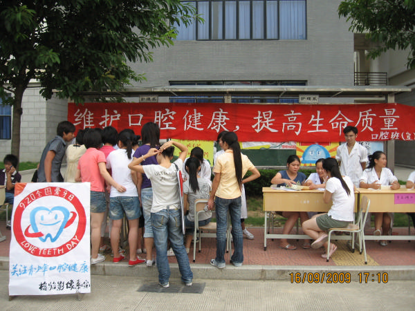 為迎接“9-20 國(guó)際愛牙日”,檢驗(yàn)影像系于2009年9月17日在學(xué)院食堂前的宣傳欄處舉辦“維護(hù)口腔健康,提高生命質(zhì)量”義務(wù)宣傳活動(dòng)??谇粚I(yè)教師馬清璇、邵旭媛、魏小平、楊坦以及06口腔501班、07口腔501班學(xué)生參加本次活動(dòng)。 師生們熱情地為廣大同學(xué)們提供口腔檢查,宣傳正確的刷牙方式、牙線的使用以及如何維護(hù)口腔健康等知識(shí)。 此次活動(dòng)體現(xiàn)出我系的教學(xué)成果以及專業(yè)特色,使同學(xué)們對(duì)本專業(yè)的知識(shí)有了更進(jìn)一步的了解和認(rèn)識(shí),取得了滿意的效果。