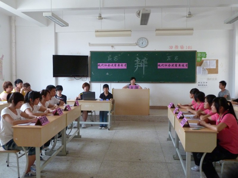醫(yī)學技術系第四屆大專生辯論賽半決賽的兩場賽事分別于5月10日、11日下午5點30分在教學樓205教室激烈開辯。本次比賽采用國際大專生辯論賽賽制,增設了攻辯階段,使整場比賽更具看點。第一場辯論題目:現(xiàn)代社會更需要通才還是專才?對陣的正反方分別為10檢驗301和10影像301(一隊)代表隊。第二場辯論題目:大學生寬松管理利大于弊還是弊大于利?正反方分別為10影像301(二隊)和09檢驗301代表隊。