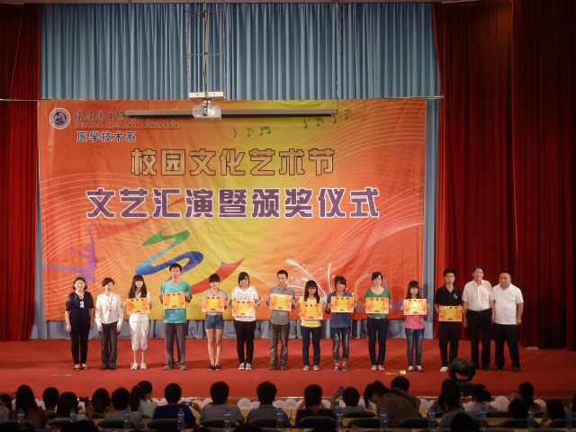 一場(chǎng)簡(jiǎn)短而熱烈的文化藝術(shù)節(jié)系列活動(dòng)頒獎(jiǎng)典禮拉開了本次晚會(huì)的帷幕,同時(shí)福州金域醫(yī)學(xué)檢驗(yàn)中心江真君經(jīng)理、醫(yī)學(xué)技術(shù)系馬少寧主任相繼講話,對(duì)同學(xué)提出了殷切希望。頒獎(jiǎng)典禮在歡樂、和諧的氣氛中閉幕。