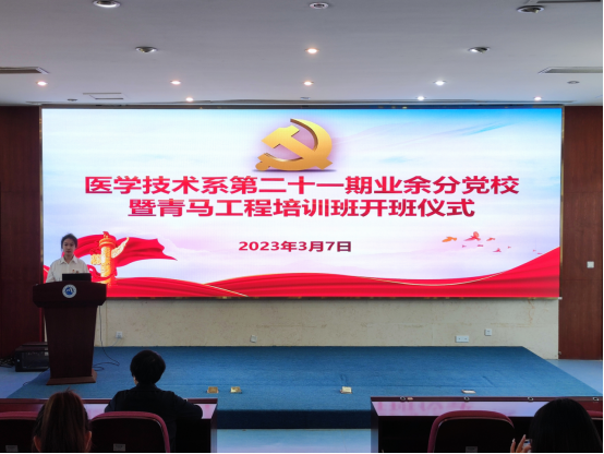 3月7日,醫(yī)學(xué)技術(shù)系第二十一期業(yè)余分黨校暨青馬工程培訓(xùn)班開(kāi)班。醫(yī)學(xué)技術(shù)系黨總支書(shū)記柯瓊鶯出席開(kāi)班儀式并作動(dòng)員講話。醫(yī)學(xué)技術(shù)系副書(shū)記林燕,學(xué)生黨支部書(shū)記、團(tuán)總支書(shū)記、團(tuán)總支副書(shū)記以及培訓(xùn)班學(xué)員參加開(kāi)班儀式。