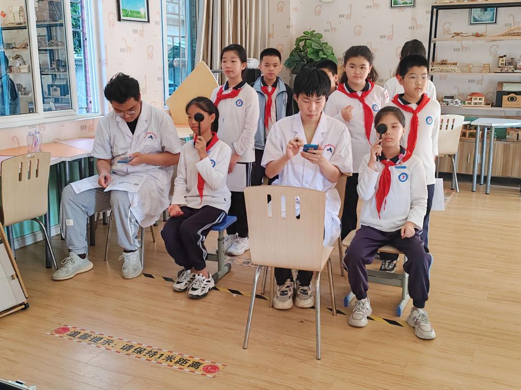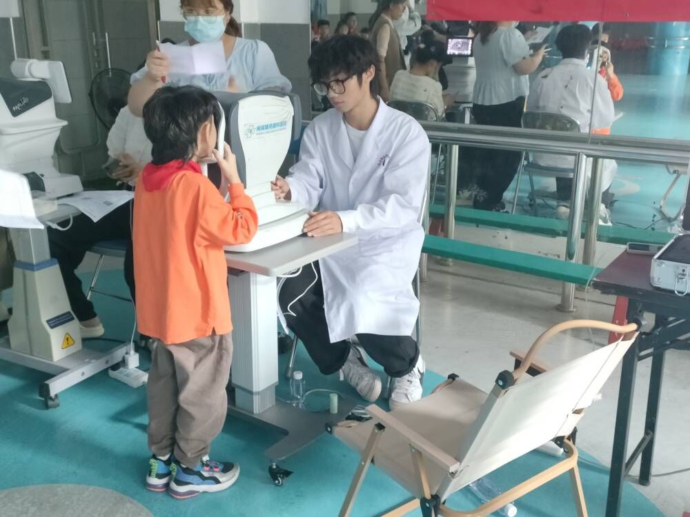 學(xué)生們在老師和醫(yī)生的帶領(lǐng)下,攜帶專業(yè)的檢查設(shè)備和工具,以志愿者的身份深入到各小學(xué)班級中,耐心地詢問每個(gè)孩子的年齡、身高、體重等基本信息,并仔細(xì)觀察他們的眼睛狀況,包括視力、屈光度、角膜曲率等指標(biāo)。同時(shí),還在校園為師生們科普基本的護(hù)眼知識(shí)以及保護(hù)視力的方法,倡導(dǎo)養(yǎng)成良好的用眼習(xí)慣、避免長時(shí)間近距離看書或使用電子產(chǎn)品,家校配合一起共同呵護(hù)孩子們的眼睛健康。