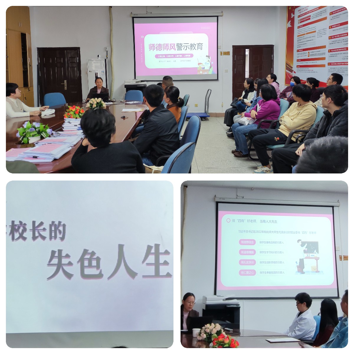 學(xué)院黨總支副書(shū)記林燕講授《師德師風(fēng)警示教育》專(zhuān)題黨課。黨課從新時(shí)代下的師德師風(fēng)、違反師德師風(fēng)的具體表現(xiàn)、違反師德師風(fēng)的典型案例、做“四有”好老師等4個(gè)方面開(kāi)展。結(jié)合《大學(xué)校長(zhǎng)失色人生》這一典型案例分析,林燕強(qiáng)調(diào)教職工要以案為鑒,注重涵養(yǎng)師德師風(fēng),修身律己、遵紀(jì)守法。