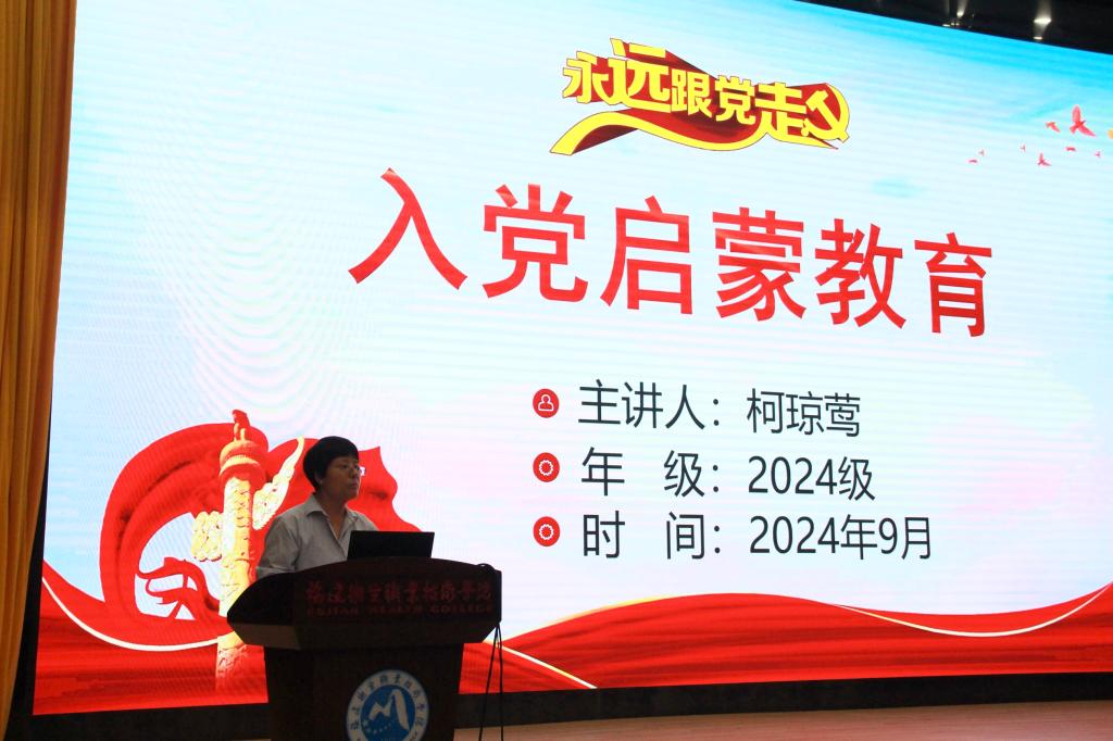 醫(yī)學(xué)技術(shù)與工程學(xué)院黨委書記柯瓊鶯先后以“中國共產(chǎn)黨是怎樣的政黨?”“中國共產(chǎn)黨黨員是怎樣的人?”“我們想要過怎樣的人生 ?”三個問題進(jìn)行入黨啟蒙與動員,結(jié)合視頻資料,利用豐富生動的畫面音效,引導(dǎo)新生們要加強理論修養(yǎng)、堅定政治立場、提升能力素質(zhì),積極向黨組織靠攏,并以實際行動接受黨組織的考驗,爭取早日加入中國共產(chǎn)黨,真正做到不負(fù)時代,不負(fù)韶華。