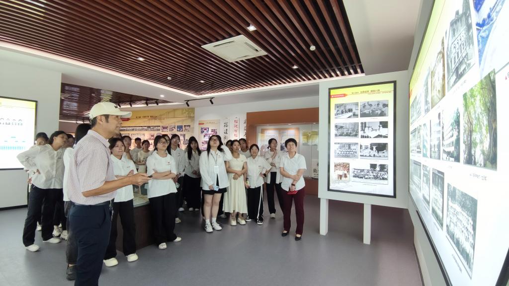 洪常青同志是學(xué)校1979級(jí)醫(yī)學(xué)大專班校友、工會(huì)原專職副主席。在這位老校友亦是老教師的帶領(lǐng)下,同學(xué)們參觀校史館“悠悠歲月,根深源遠(yuǎn)”、“滄桑巨變,崛起八閩”、“立德樹人,風(fēng)正帆懸”、“守正創(chuàng)新,建設(shè)示范”以及“不忘初心,行穩(wěn)致遠(yuǎn)”五大展區(qū)。通過一樁樁學(xué)院大事記、一幅幅生動(dòng)的歷史照片,一件件鮮活的歷史實(shí)物,同學(xué)們?nèi)轿涣私鈱W(xué)校辦學(xué)的崢嶸歷程,感受一代代閩衛(wèi)人的接續(xù)奮斗,領(lǐng)略學(xué)校百余年校史的厚重底蘊(yùn)。