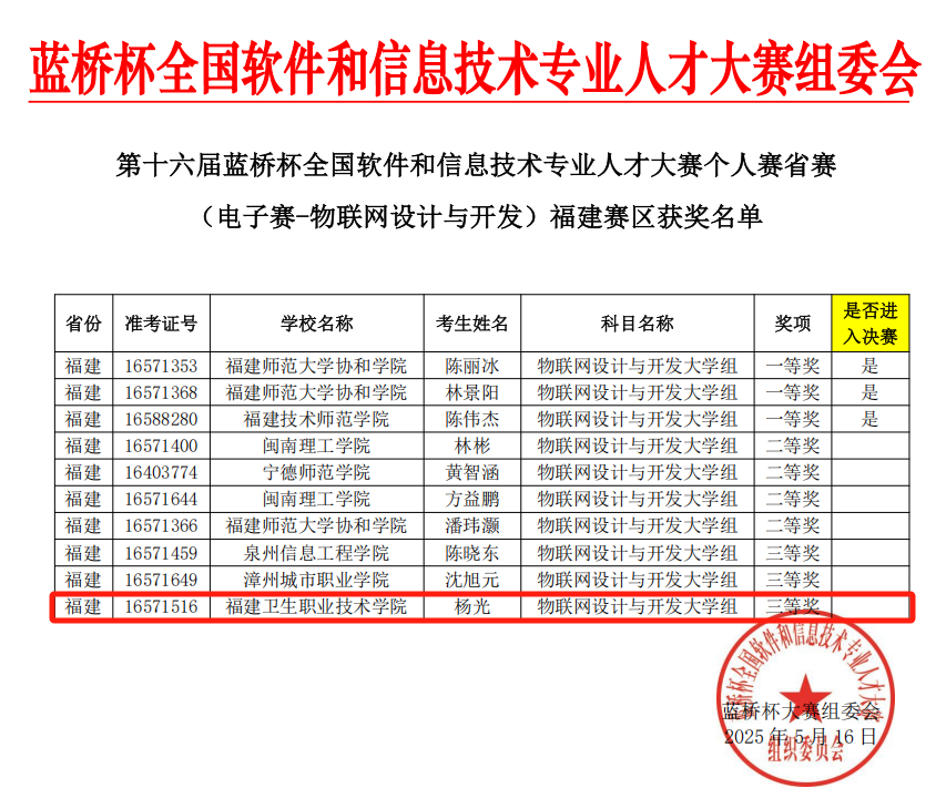 第十六屆藍(lán)橋杯全國軟件和信息技術(shù)專業(yè)人才大賽(福建賽區(qū))獲獎(jiǎng)名單