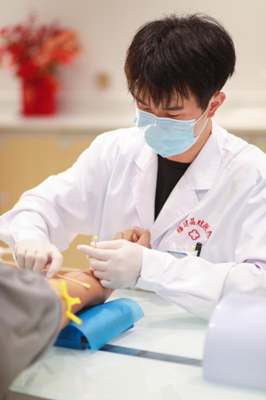 在福建衛(wèi)生職業(yè)技術(shù)學(xué)院的一堂醫(yī)學(xué)檢驗(yàn)實(shí)踐課上,指導(dǎo)老師的一句話讓黃德興突然意識到,看似簡單的采血,是檢驗(yàn)的 “第一道門檻”,采血是檢驗(yàn)工作的重要一環(huán),也是患者感受醫(yī)療服務(wù)的直接窗口。同時黃德興注意到,許多患者尤其是老人和孩子對采血存在恐懼心理。于是,他開始了長達(dá)兩年的技術(shù)鉆研。從最開始的泡沫板模擬,到在自己手臂上反復(fù)練習(xí),每天幾千次的重復(fù)訓(xùn)練讓他的手指經(jīng)常抽筋,雙臂布滿針眼和瘀青。