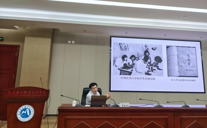 為推進黨史學(xué)習(xí)教育走深走實,引導(dǎo)學(xué)院師生從黨的抗戰(zhàn)歷史中感悟初心使命、汲取奮進力量,10月23日,醫(yī)學(xué)技術(shù)與工程學(xué)院特邀曹敏華教授,開展“中國共產(chǎn)黨抗戰(zhàn)動員的歷史考察與成功經(jīng)驗”專題講座。醫(yī)工學(xué)院師生代表、直屬機關(guān)黨總支組織統(tǒng)戰(zhàn)部黨支部黨員以及農(nóng)工民主黨福建衛(wèi)生職業(yè)技術(shù)學(xué)院支部黨員現(xiàn)場聆聽學(xué)習(xí)。