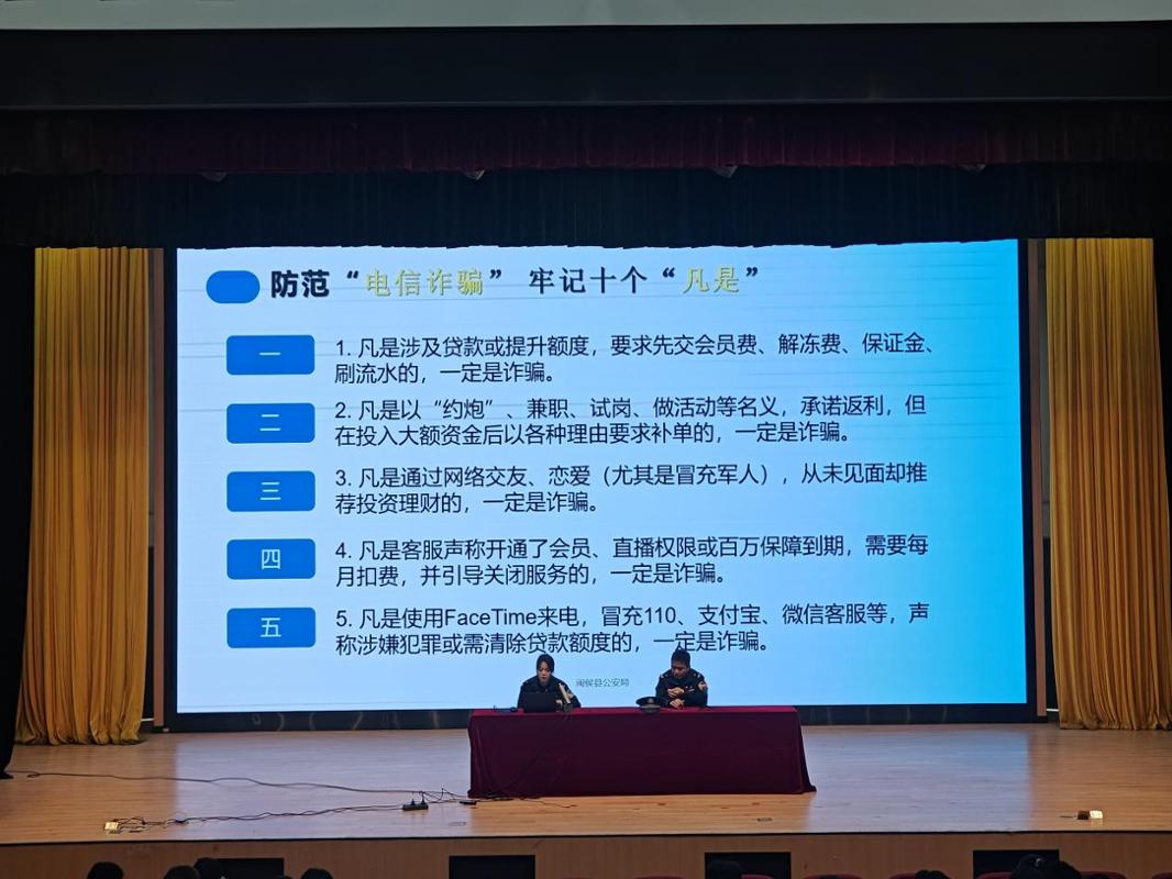 新學(xué)期,為有效提高我校學(xué)生防范電信網(wǎng)絡(luò)詐騙意識和能力,識別目前較為常見的各類電信網(wǎng)絡(luò)詐騙的手段和方法,2025年2月21日,閩侯縣公安局荊溪派出所副所長陳耀帶隊(duì),我校校外法治輔導(dǎo)員鄭騰強(qiáng)警官等一行為我校學(xué)生作題為《加強(qiáng)自我防范意識 謹(jǐn)防網(wǎng)絡(luò)詐騙》的安全知識講座,刑偵大隊(duì)反詐中心警官吳詩吟主講,醫(yī)學(xué)技術(shù)與工程學(xué)院學(xué)生及部分護(hù)理學(xué)院學(xué)生參加講座。